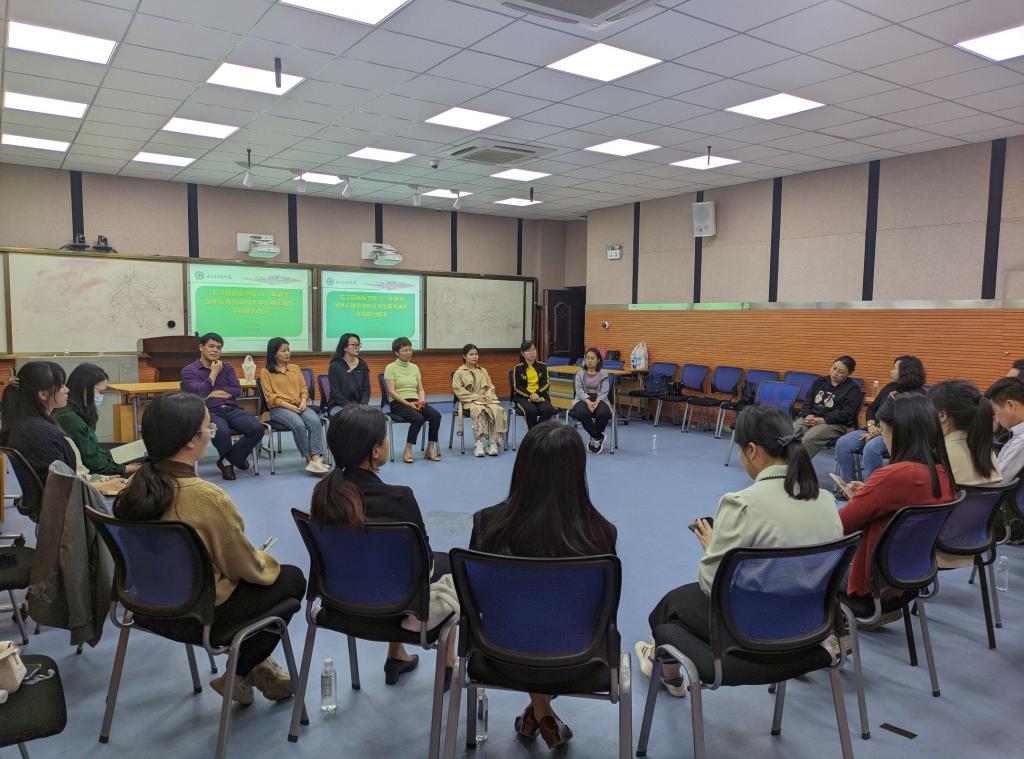在4月8日团体心理咨询培训中,陈老师从团体心理咨询的理论概述、设计与体验、领导技术三个角度进行讲授,对团体心理咨询的理论架构、功能特点进行讲解梳理,着重突出团体心理辅导设计理念和工作阶段,以高水平的团体领导技术带领与会人员开展了一次完整的实践体验。在4月9日大学生朋辈辅导实操能力培训中,陈老师从大学生朋辈辅导的工作原理、工作技巧、典型朋辈辅导案例讨论进行讲授,在实训中结合小组2人练习进一步锤炼朋辈心理辅导员八项基本朋辈心理咨询技术,体验式互动增强了朋辈辅导理论领悟和工作能力的提升。