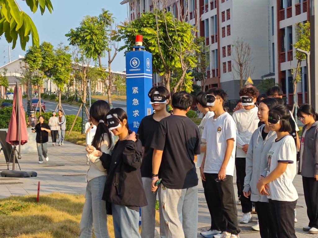 同学们两两组队完成“信任盲行”